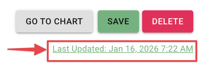 At the bottom of the appointment modal, underneath the Go to Chart, Save, and Delete buttons, you’ll see a Last Updated timestamp reflecting the most recent activity on that appointment.